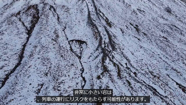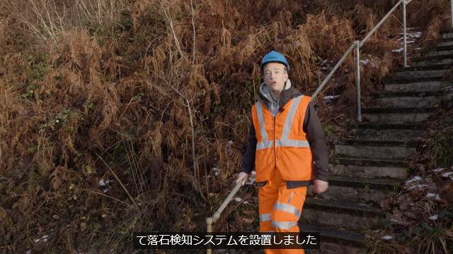 落石の危険から列車を守るため、落石によってワイヤーが切れると、信号が「危険」に切り替わるという危険感知システムが設置されている。