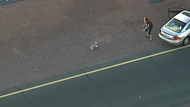 2011年11月、アメリカ、アリゾナ州フェニックスの高速道路にて、事故を起こした飼い主の元から脱走してしまったシーズー。
