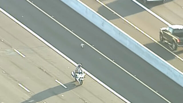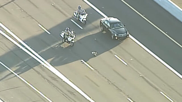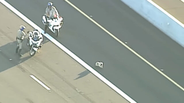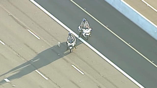 - 高速道路を逃げる小型犬と、バイクで追う警察官。2011年の米アリゾナ州で $ArticleTagsLoop$>
