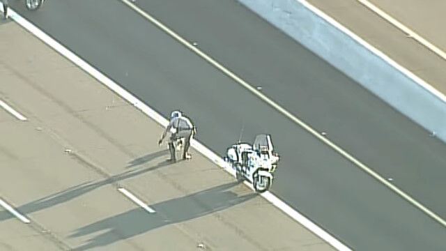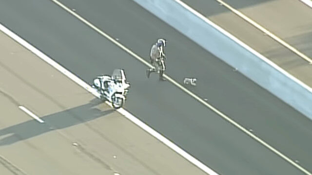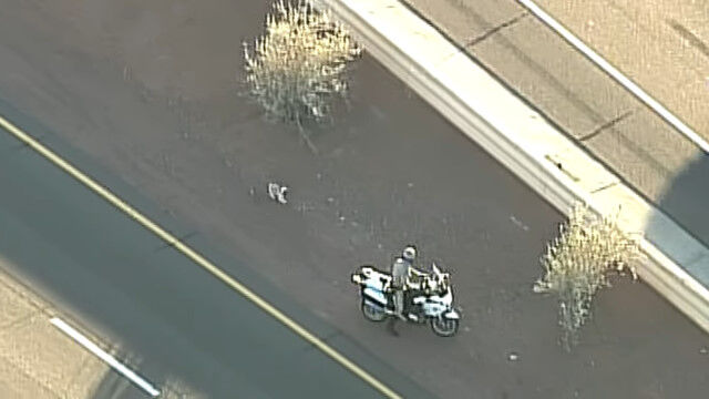 それなりに交通量のある高速道路をひた走る危険な状況に、アリゾナ州の警察官がバイクで追跡。