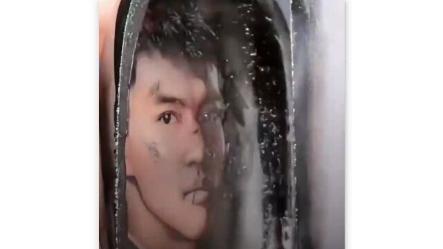 特殊な描き方なのに絵も字も上手すぎる。ボトルの内側に筆で描いたアート