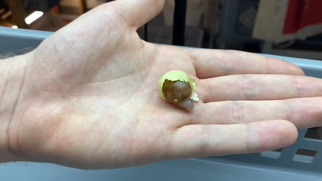 卵の大きさからして普通のカタツムリとは比べ物にならないくらいデカくて、ウズラの卵と同じくらいのサイズ。