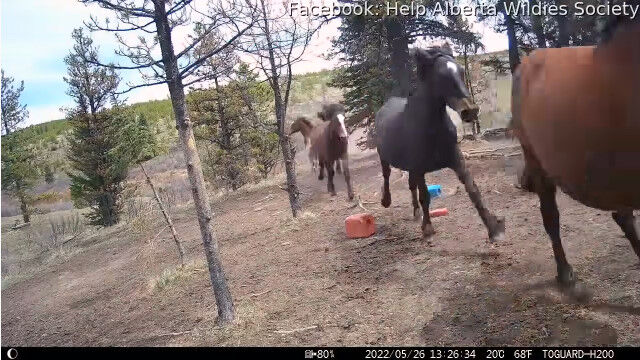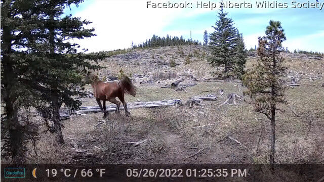 アルバータ州の野生馬は絶滅危惧種で、その調査のために設置されたトレイルカメラのひとつが撮影。