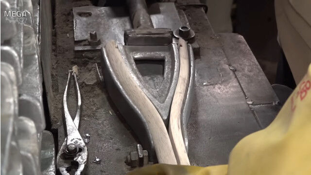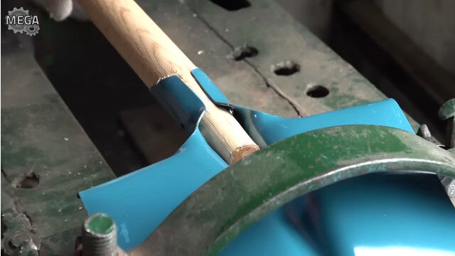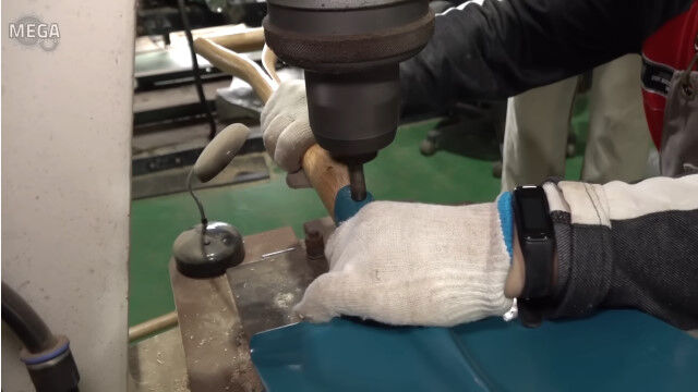 #持ち手が木製のシャベルを作る、シャベル工場の作業風景