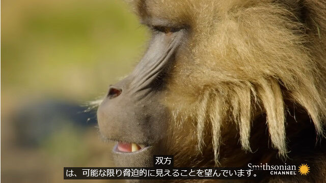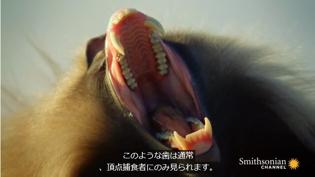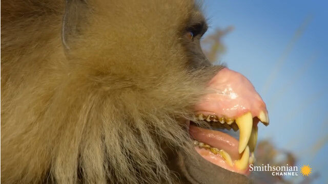 #極限まで歯茎をむき出しにする、ゲラダヒヒの威嚇行動