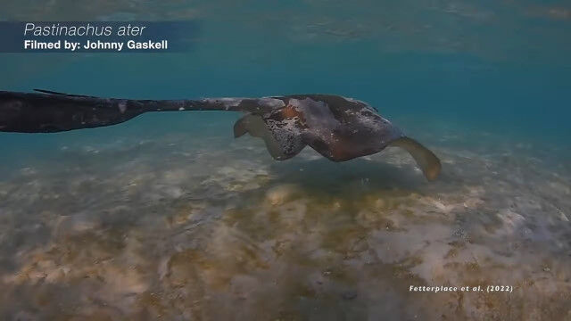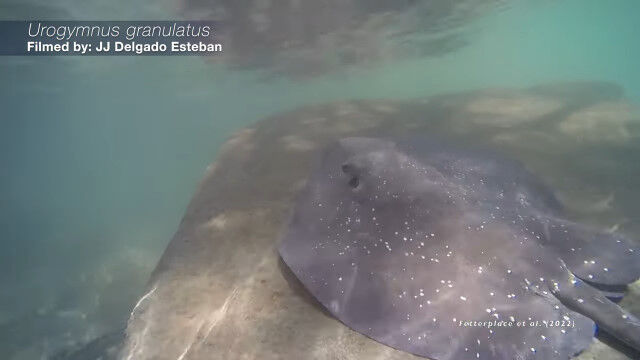 最初に出てくるのがオジロエイ(Urogymnus granulatus)、次が同じくオジロエイの幼魚で、最後がツカエイ(Pastinachus ater)。