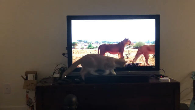 #猫さん、テレビに映ったライオンの群れに合流したくなる