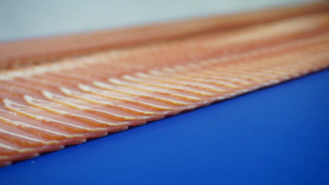 ペパロニやベーコンなどのお肉をスライスするための機械で、毎分2,000回転のブレードが生み出すスライス肉は、肉がバグってしまったかのよう。