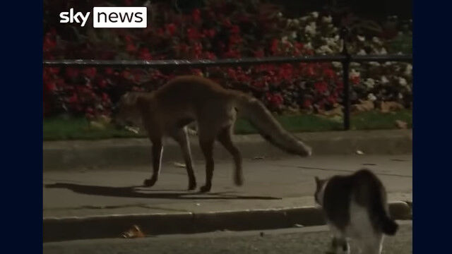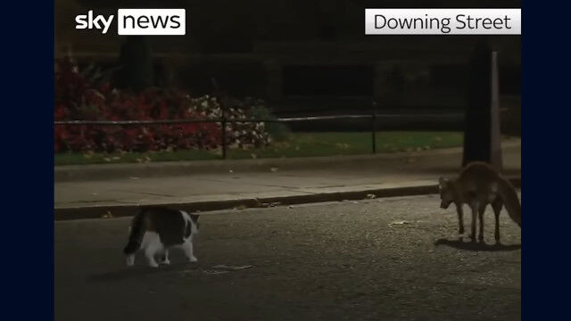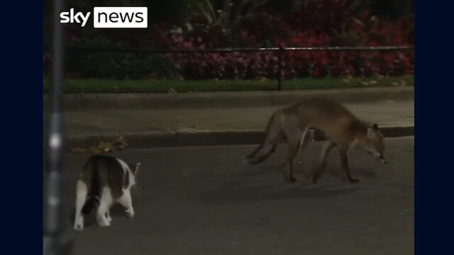 Larry the cat chases off fox outside No 10 downing street
