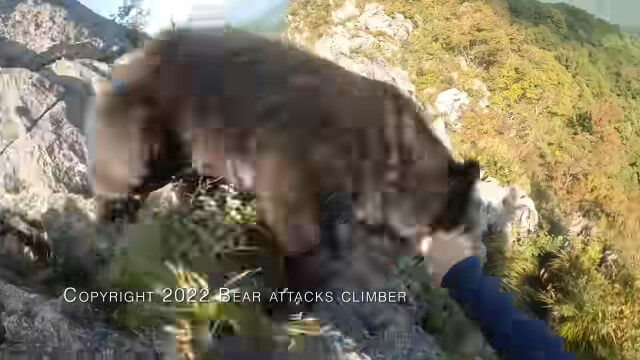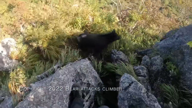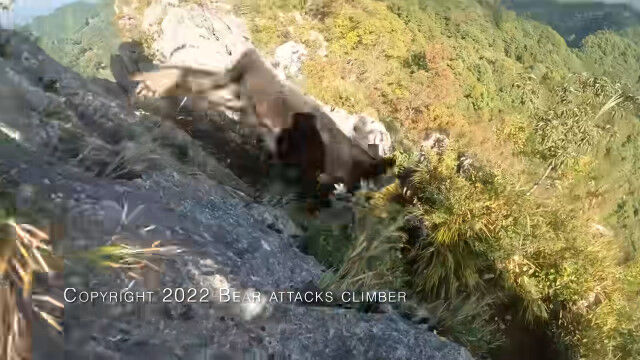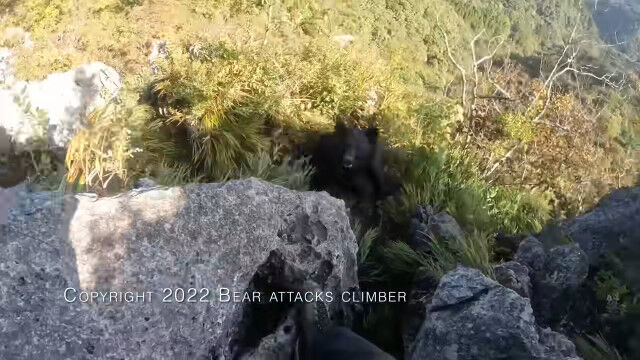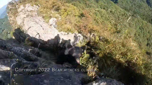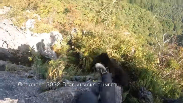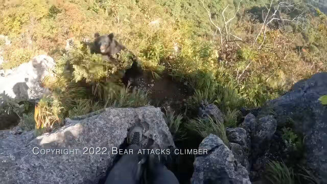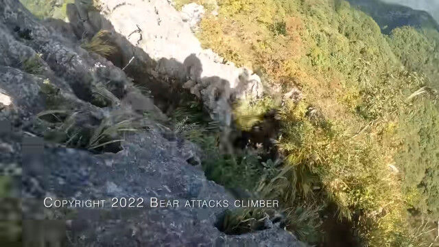 埼玉県の二子山を登山中、岩壁を降りている最中に背後からクマの襲撃を受けてしまった男性のヘッドカム映像。
