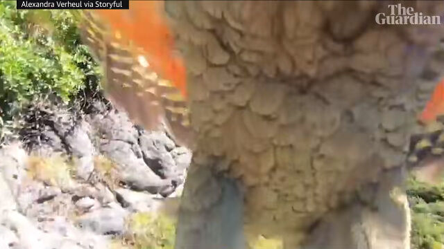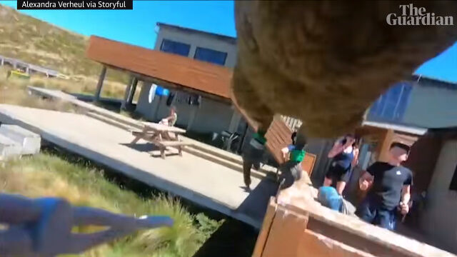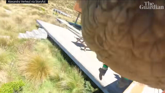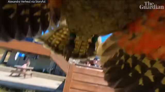 カメラはずっと録画中であったため、盗まれる瞬間から空を飛ぶ様子、離れていく建物や、着陸後についばまれる様子までが収められることに。