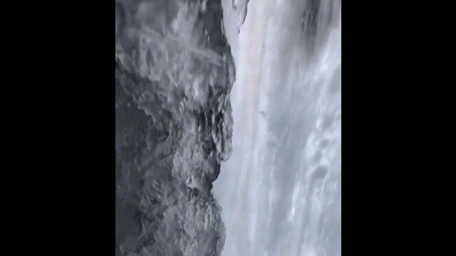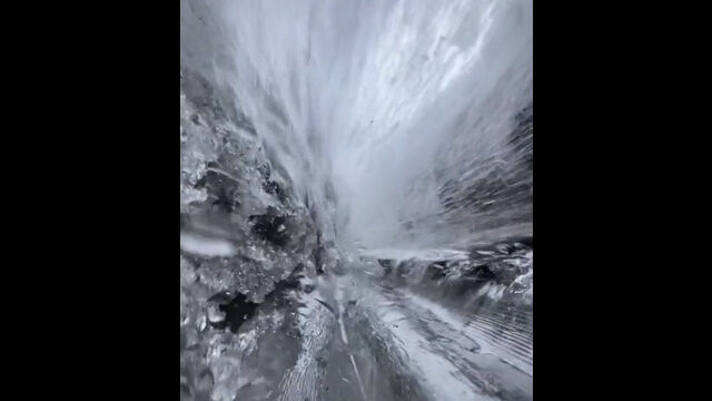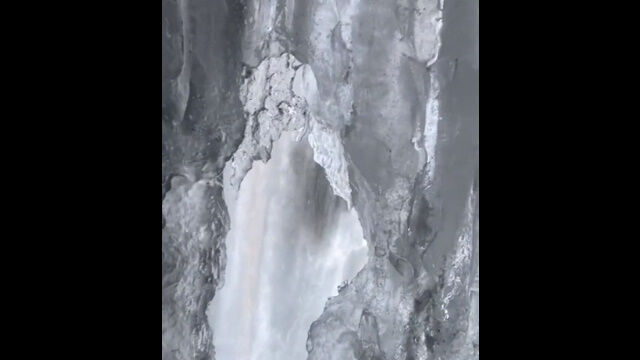 凍りついた滝の中を撮影した、なかなか珍しい映像