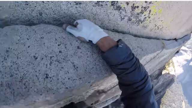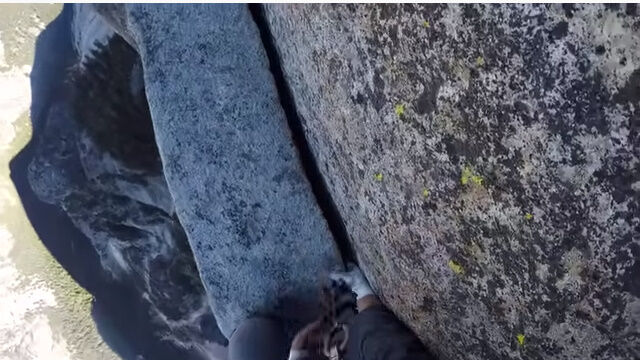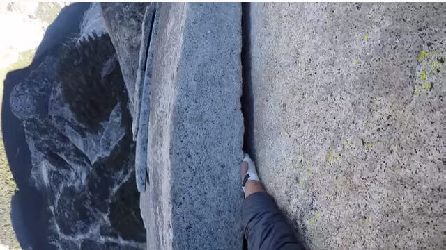#1人立つのが精一杯という幅の岩場を進む、ロッククライミングの主観映像