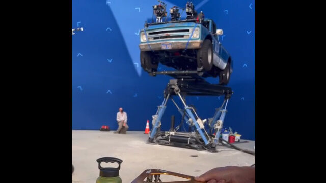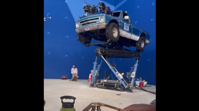 特殊な台の上で車を傾ける、映画のカーチェイスシーン撮影舞台裏