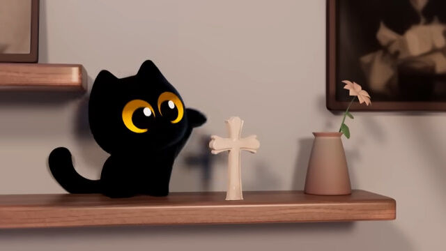 邪悪な何かが取り付いたとしか思えない愛猫の行動に、悪魔祓いを試みる男の子のショートアニメーション。
