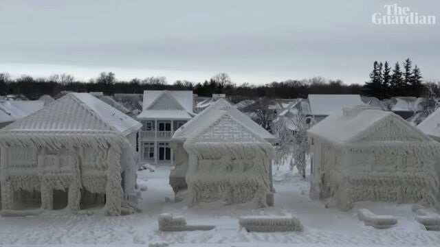 12月28日、カナダ、オンタリオ州フォートエリーが猛吹雪に見舞われ、湖畔の家が凍りついてしまう。