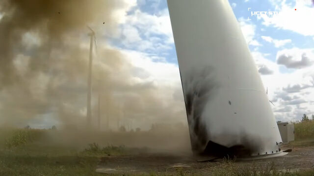 70M WIND TURBINE BLOWN TO PIECES | CONTROLLED EXPLOSION