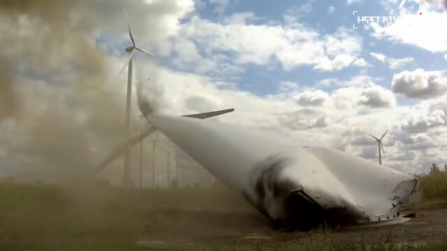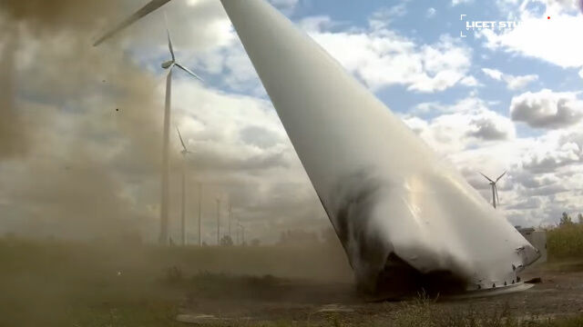 ドイツにある風力タービンの根本を爆破、倒して解体する瞬間