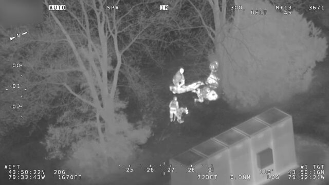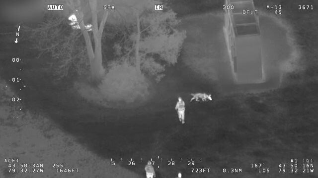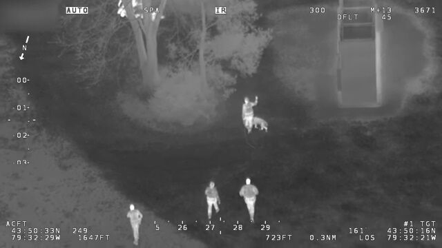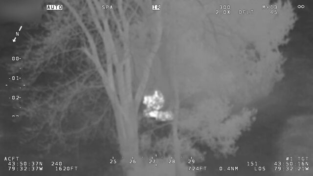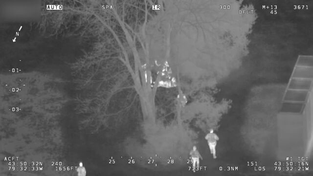 通報を受けた警察のヘリコプターが、赤外線カメラを使い、木の下に隠れている容疑者らを発見。