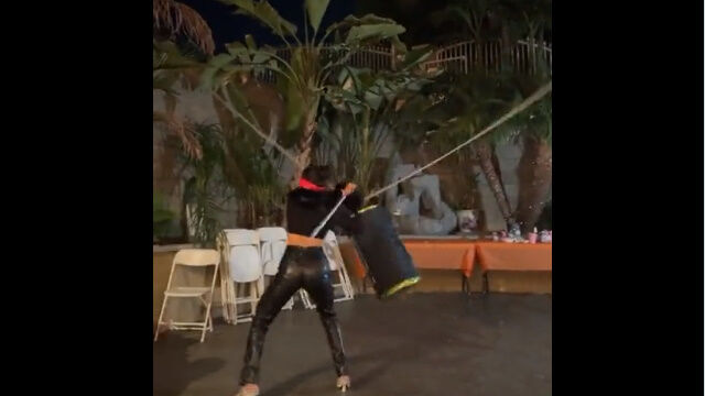 驚くほど当たらないピニャータ。全力で叩きに行ってるのに、ここまで当たらないのも凄い