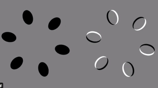 右側で回転しているのは、白、黒、灰色に点滅している6つの楕円形。